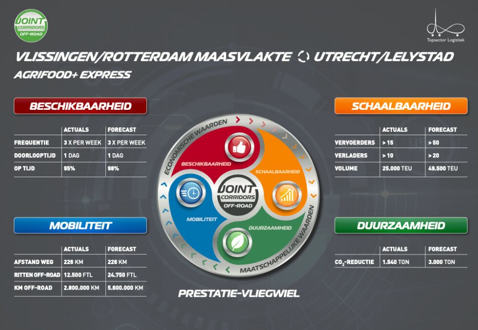 De totstandkoming van de Joint Corridor AgriFood+ Express tussen Vlissingen, Rotterdam en Lelystad maakt onderdeel uit van Joint Corridors Off-Road, een programma van de Topsector Logistiek. Uitgangspunt van Joint Corridors Off-Road is dat economische en maatschappelijke groei van het wegvervoer alleen mogelijk is als het vervoer parallel toeneemt via verschillende modaliteiten. Hierdoor ontstaat ruimte op de weg om de groei van hoogwaardig wegvervoer mogelijk te maken en de doorstroming en bereikbaarheid te verbeteren. Met Joint Corridors Off-Road wil de Topsector Logistiek verladers en logistiek dienstverleners actief betrekken bij initiatieven voor synchromodaal transport en nieuwe vormen van samenwerking stimuleren.