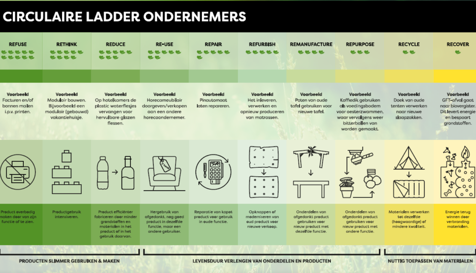 Waar begin je als ondernemer? Welke strategie heeft de grootste impact, op korte én lange termijn? Het 9R-model helpt je verder. In dit model staan de strategieën die je kunnen helpen circulair te ondernemen.